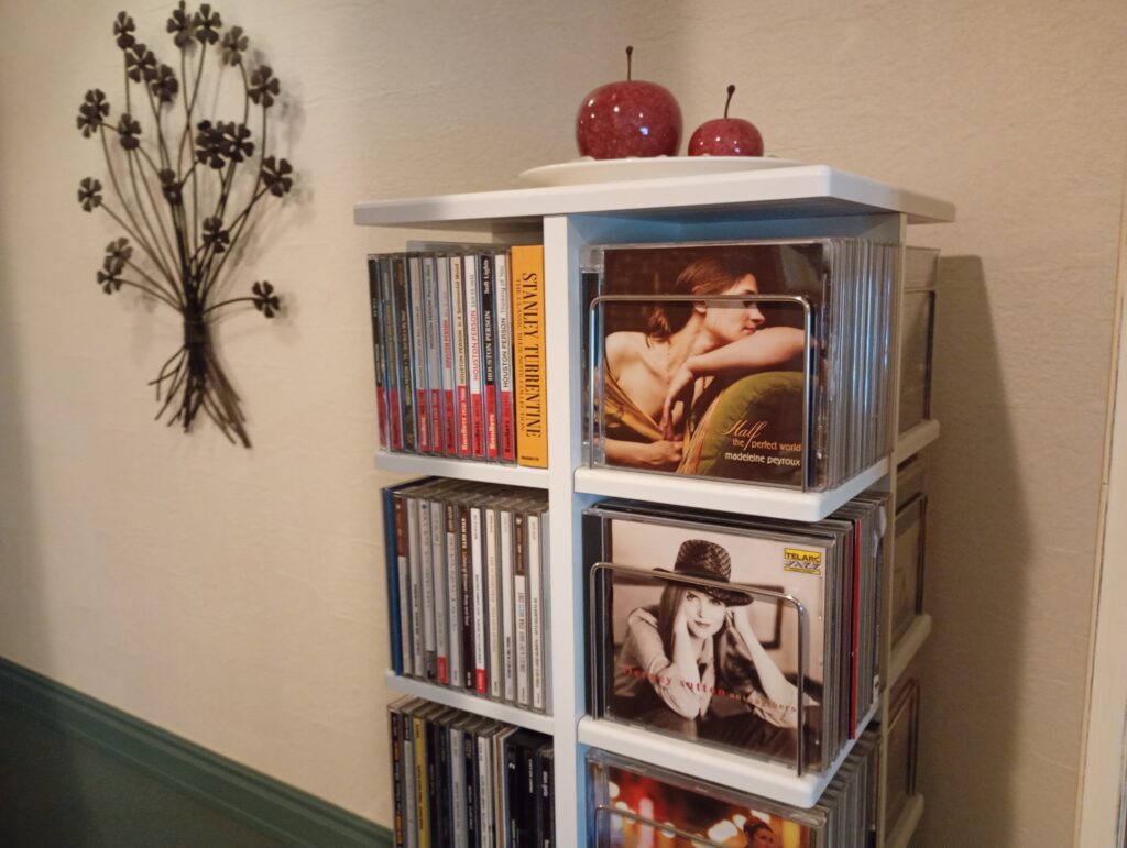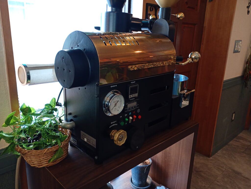 カウンターにはお酒が並び、傍らには大きな焙煎機と、オーナーこだわりのCDがぎっしりと詰まったラックがあります。