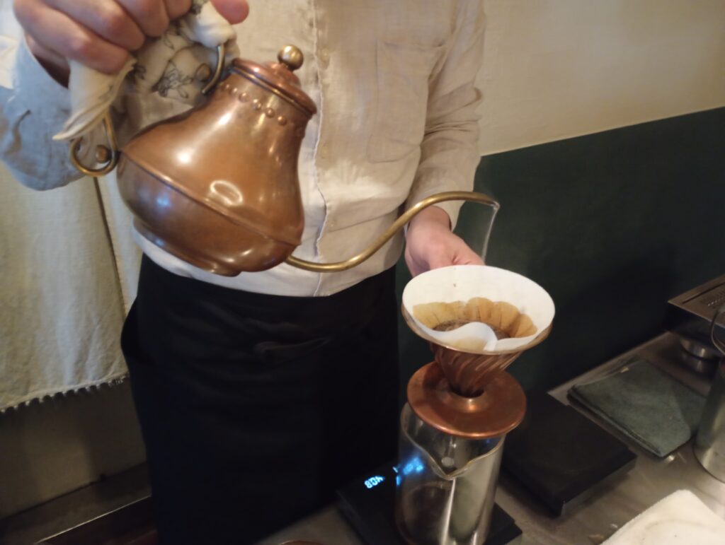カウンター席に座ると、目の前で一杯ずつ丁寧にハンドドリップが始まります。