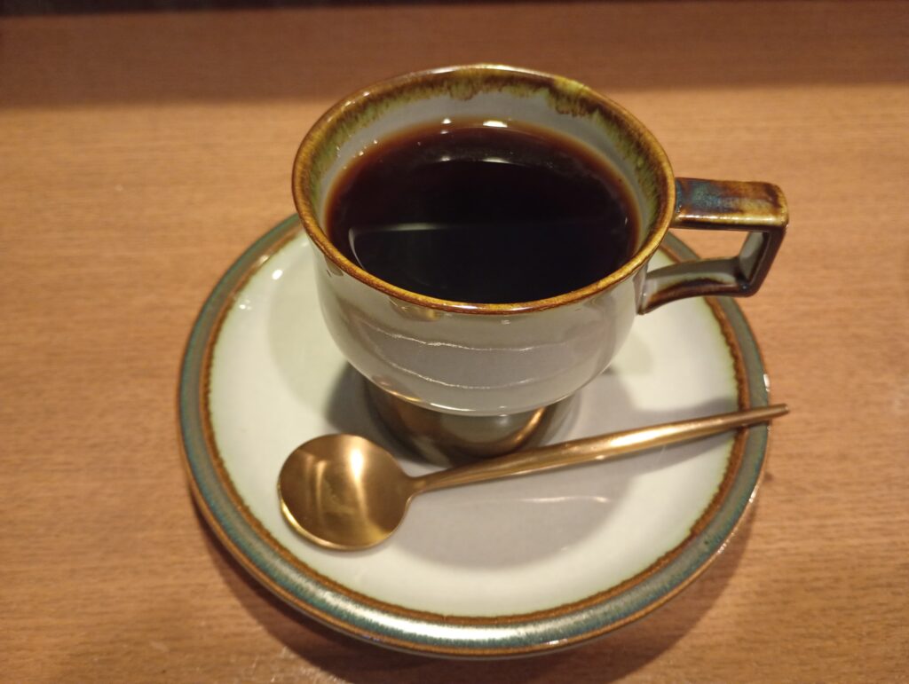 この水で淹れたコーヒーは、驚くほどマイルドで雑味がありません。「田柄クラシックブレンド(700円)」をアンティークのティーカップでひと口。熱いうちはもちろん、冷めてからも角が立たず、柔らかな味わいが続くのが特徴です。
