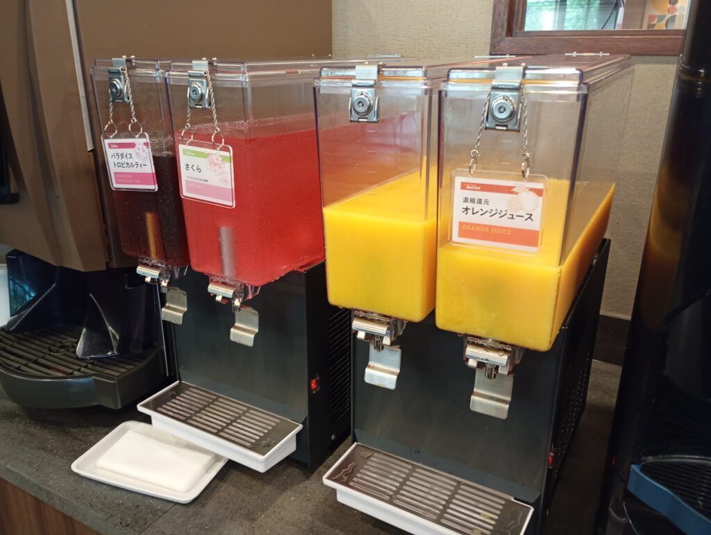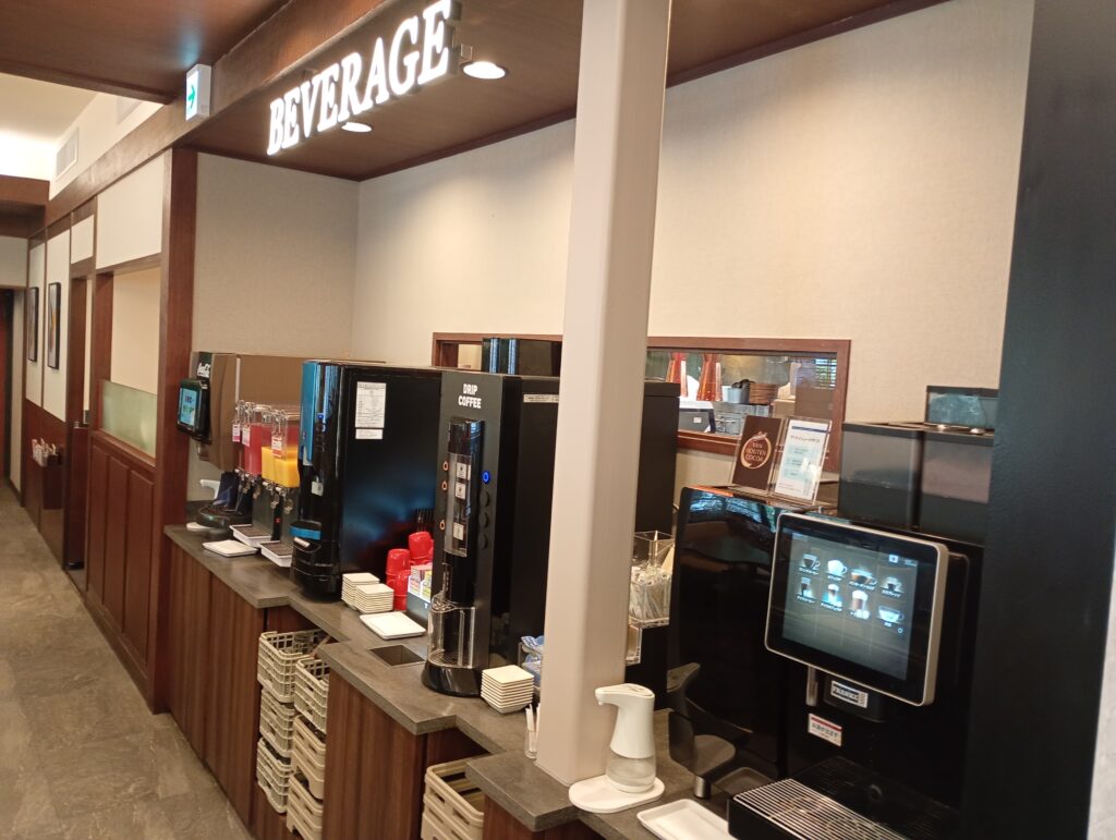 - 左側エリア: ゆったりとしたボックス席が並び、ドリンクバーもこちら側に。家族や友人と腰を据えて会話を楽しめる落ち着いたレイアウトです。