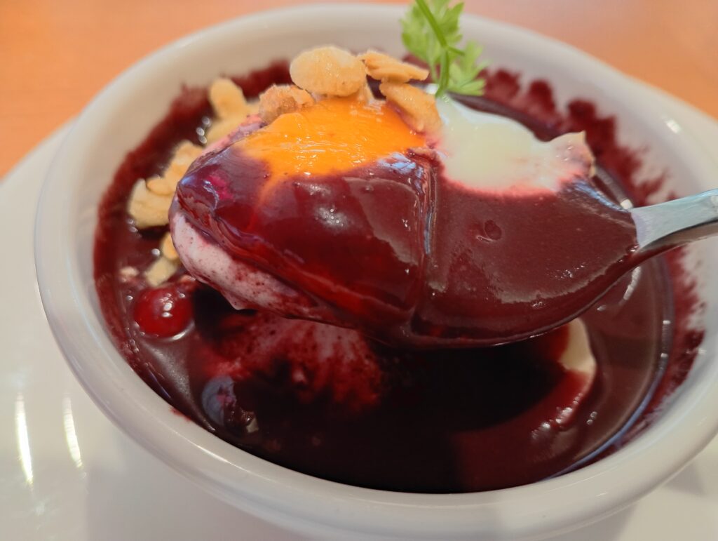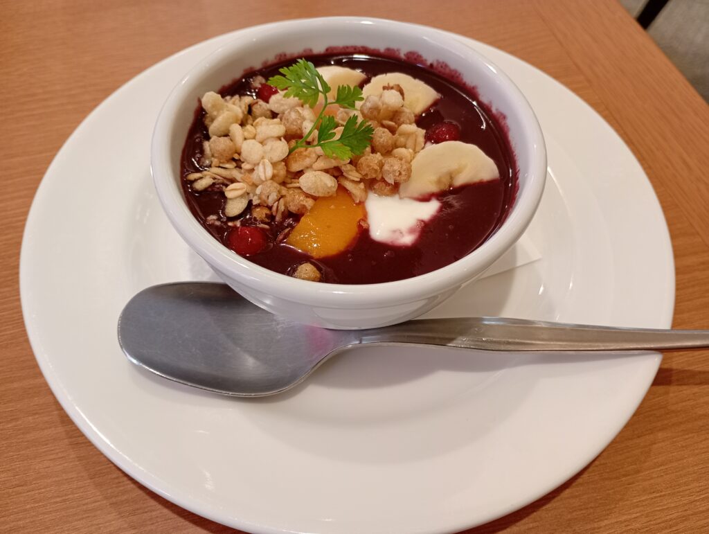 今回は、最近のヘルシー気分の相棒「アサイー」とドリンクバーを注文しました。 ホテルのダイニングを思わせるようなラグジュアリーな雰囲気の中、美味しいデザートを片手に過ごす時間はまさに至福。つい長居したくなるような、のんびりとした贅沢な時間が流れていました。