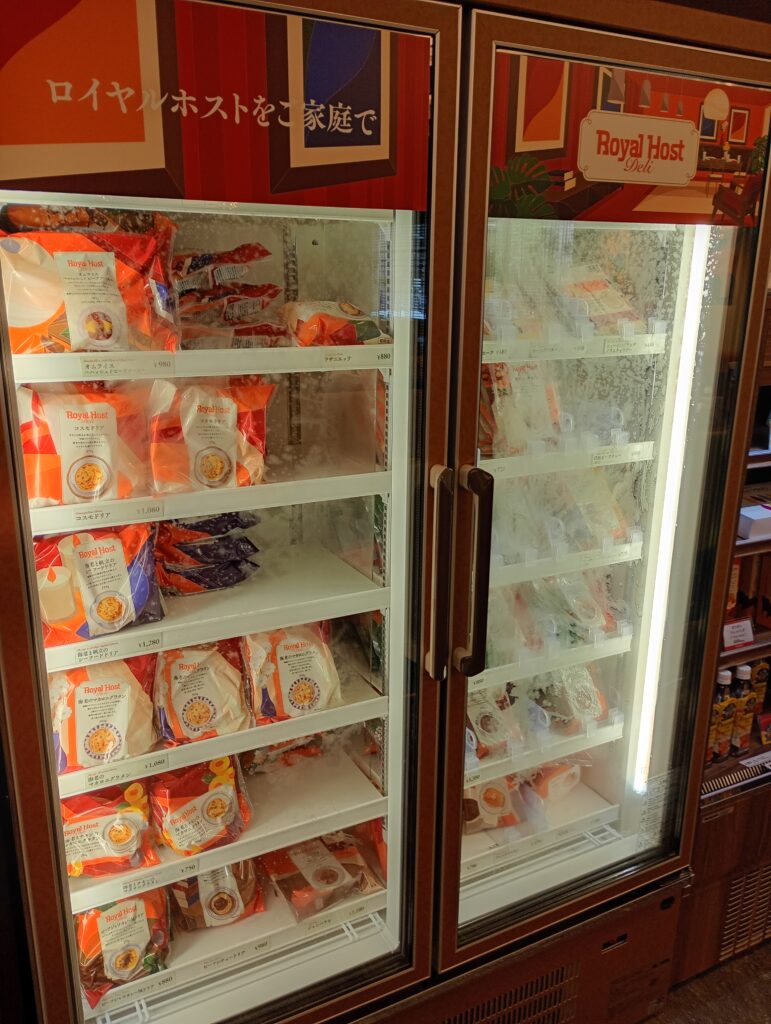 レジ付近の物販コーナーも充実しています。 ロイヤルホストこだわりの冷凍食品やドレッシングなど、家でもお店の味を楽しめる食品が販売されているので、手土産やお土産にもおすすめです。