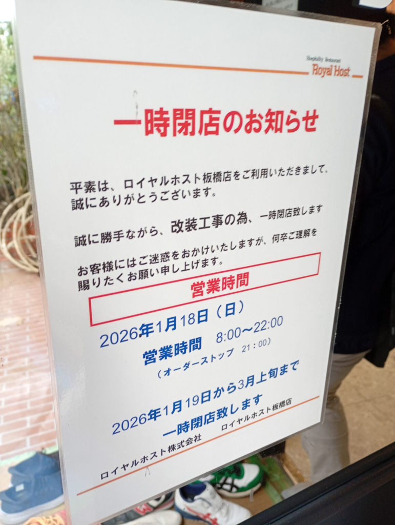 2026年1月から店舗改装のため休店していたロイヤルホスト板橋店が、4月、ついにリニューアルオープンしました!綺麗になったという噂を聞きつけ、さっそく足を運んできました。