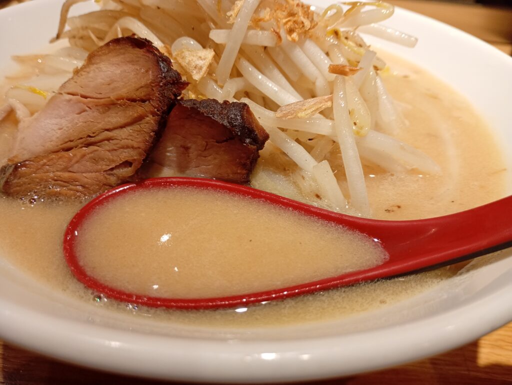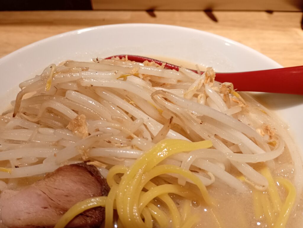 - 具材: 強い火力で炒められたもやしのシャキシャキ感が、濃厚なスープと絶妙なコントラストを生んでいます。