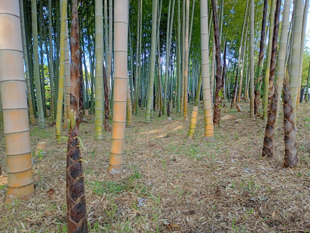 もともと竹林だった場所を整備して造られたこの公園には、現在、鳳凰竹(ほうおうちく)や金明竹(きんめいちく)など、約13種類もの珍しい竹が植えられています。