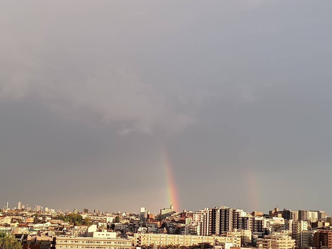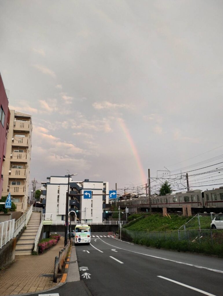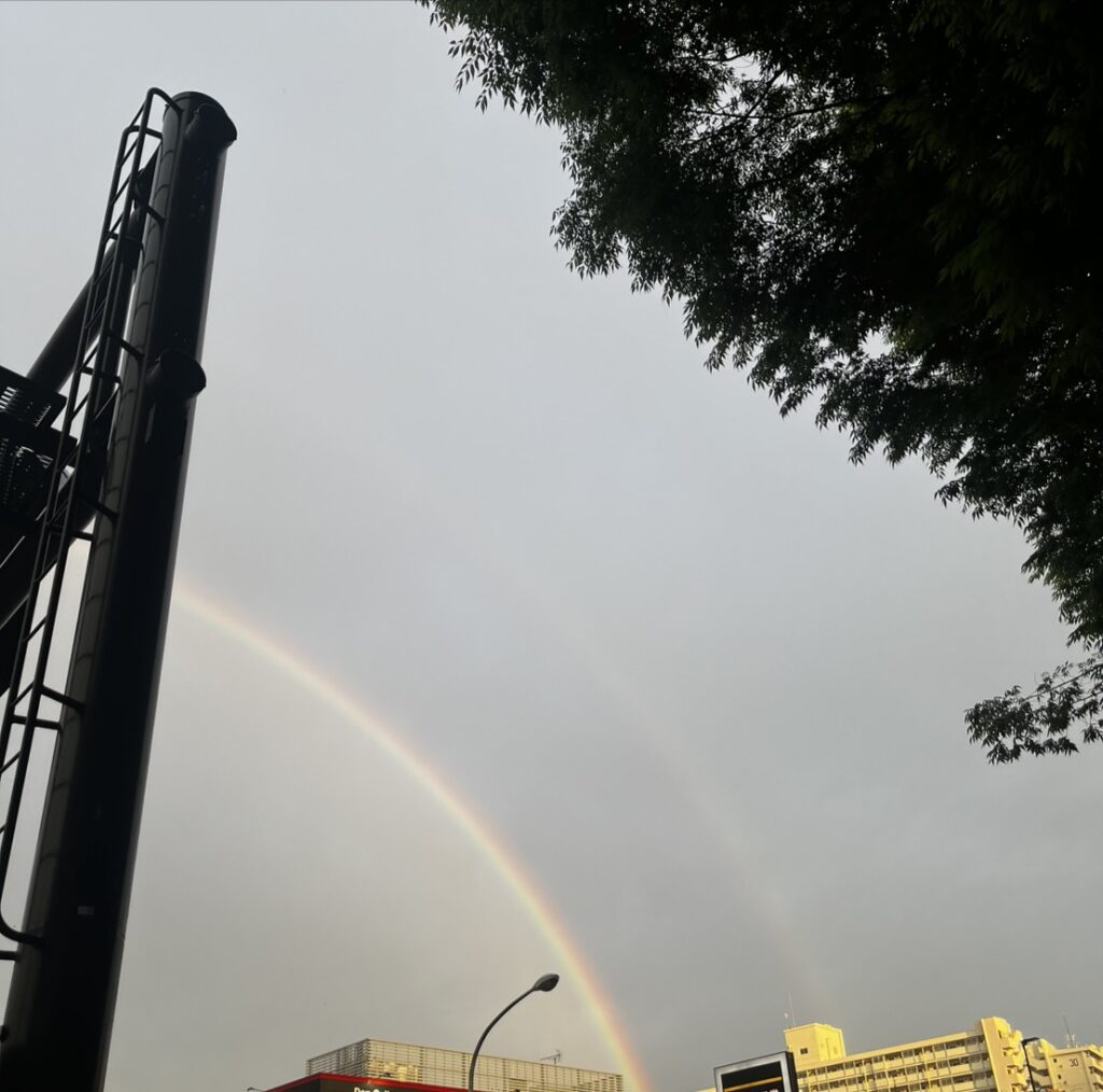 2026年4月27日の夕方、成増周辺や和光市の空に、息をのむほど美しい二重の虹(ダブルレインボー)が出現しました。