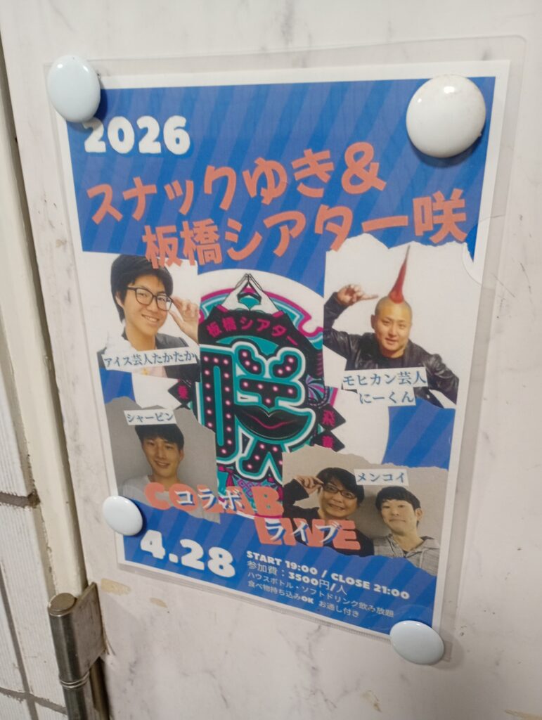 4月28日、この場所で特別なイベントが開催されました。遊座大山商店街に拠点を置くお笑い劇場「板橋シアター 咲(さき)」とのコラボレーションです。