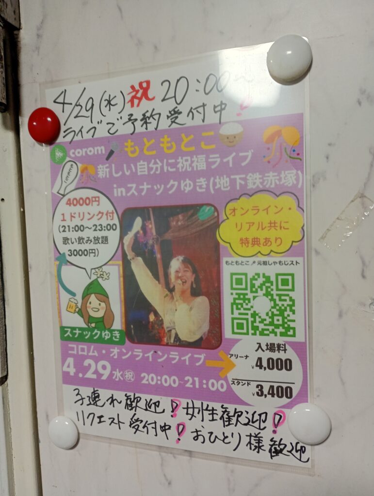 このオープンのきっかけを作ったのは、ゆきちゃんの飲み仲間であり、地元・赤塚を中心に活動するママ友バンド「音ごはん」として活動してきた、もともとこさんでした(2026年2月に「音ごはん」のバンドとしての活動は発展的解散を迎え、現在はライブ、演劇など幅広くソロ活動を行っています)。
