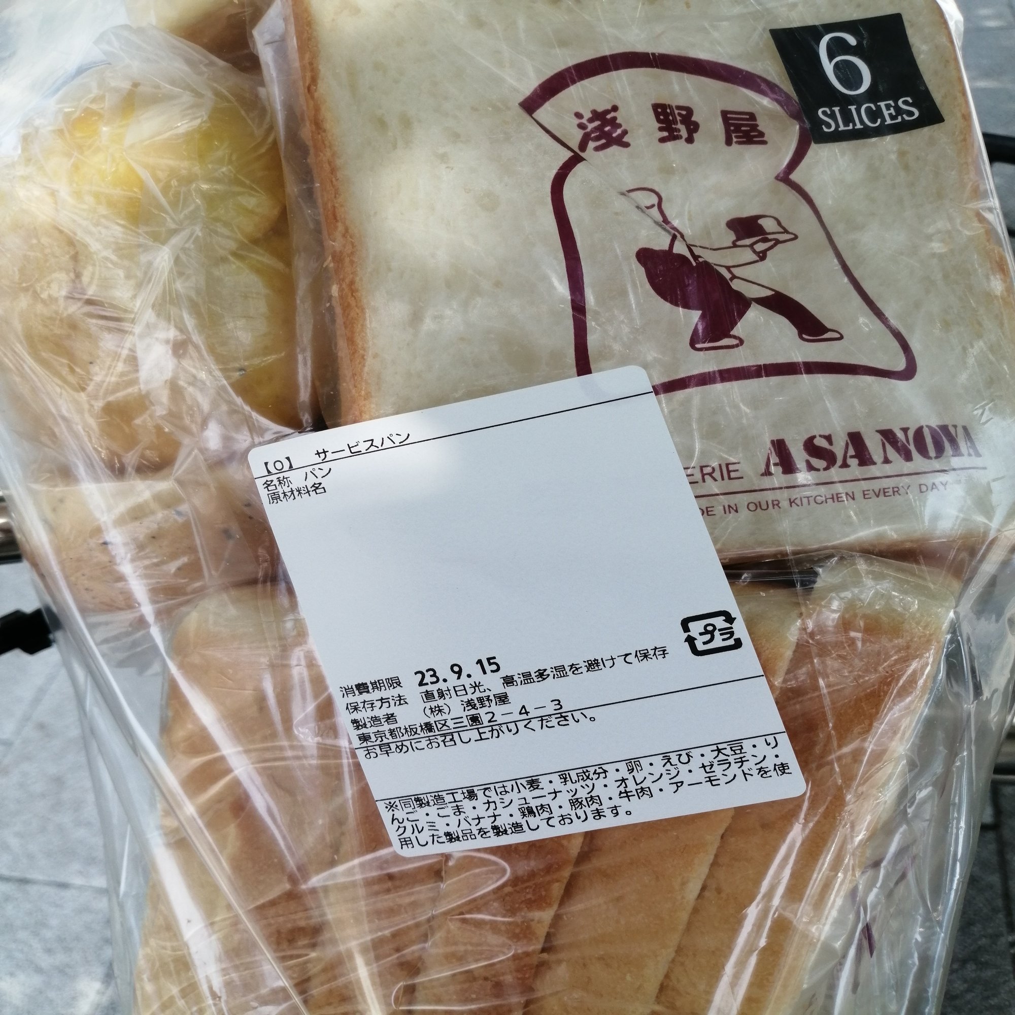 こちらは別の日に購入したものですが、食パンが2斤とメロンパンや豆パン5個、バゲット2個、塩パンが入ってました。浅野屋は小麦粉が美味しいので食パンは何もつけなくてもパクパク食べられます。