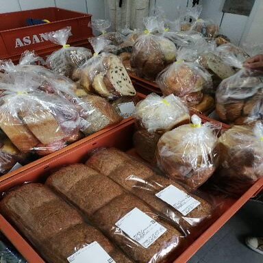 中身は一つ一つ違うのでどれを選ぶか迷ってしまいます。この日はフォカッチャ、菓子パン、食パン、クルミパン、レーズンパンなどなどが袋の中に入っていました。普通に店舗で購入した場合は2,000~3,000円はするようです。