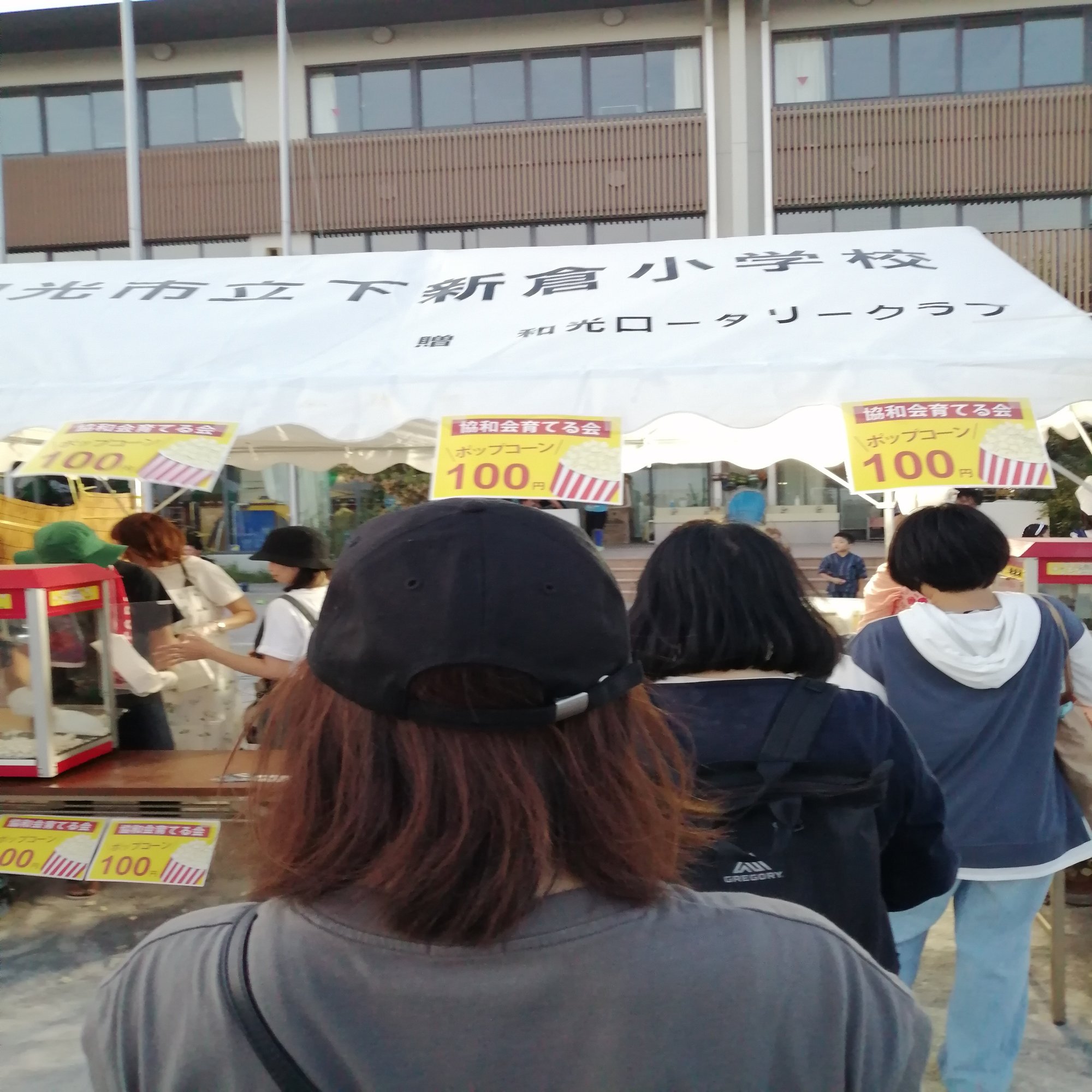 模擬店もたくさんでていました。こちらはポップコーン100円。花火大会に行くので花火を見ながら食べるおやつとして購入させて頂きました。