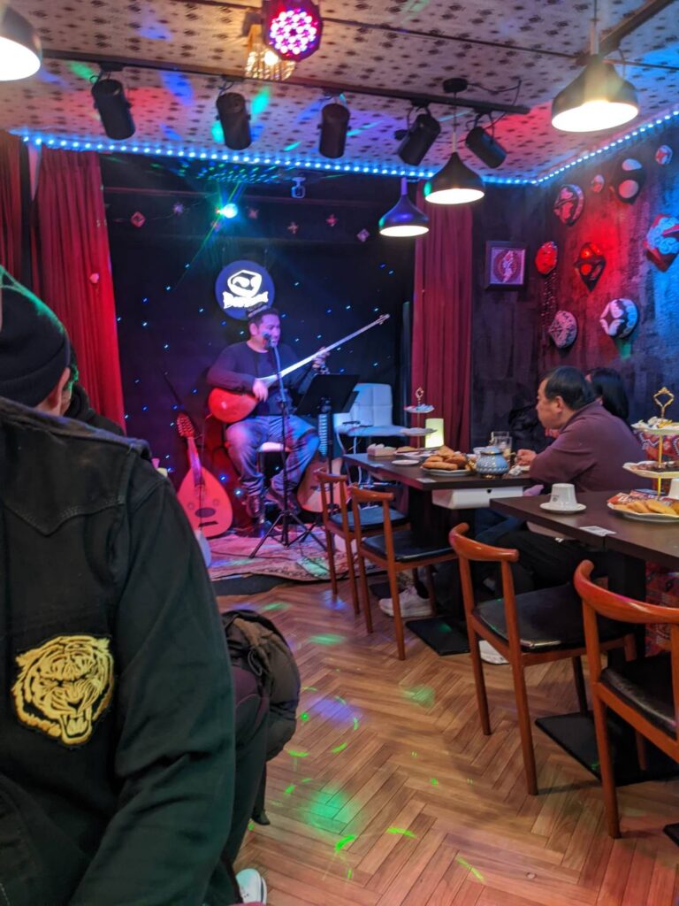 ラーメンみたいなメニューが美味しかった記憶があります。量は全体的に多めですかね。サービスも良いと思います。ウズベキスタンとかそっち系の料理なので、ラム肉が多いです。注文はモバイルオーダ式です。日本語はつうじます。9時くらいに生演奏ライブはじまりますね。