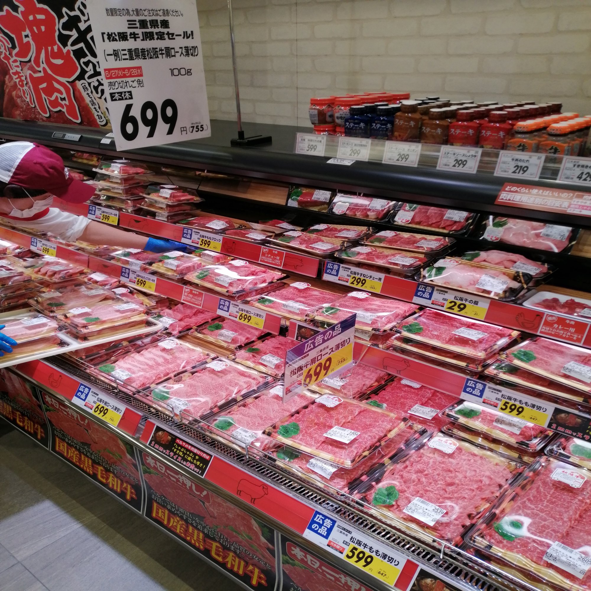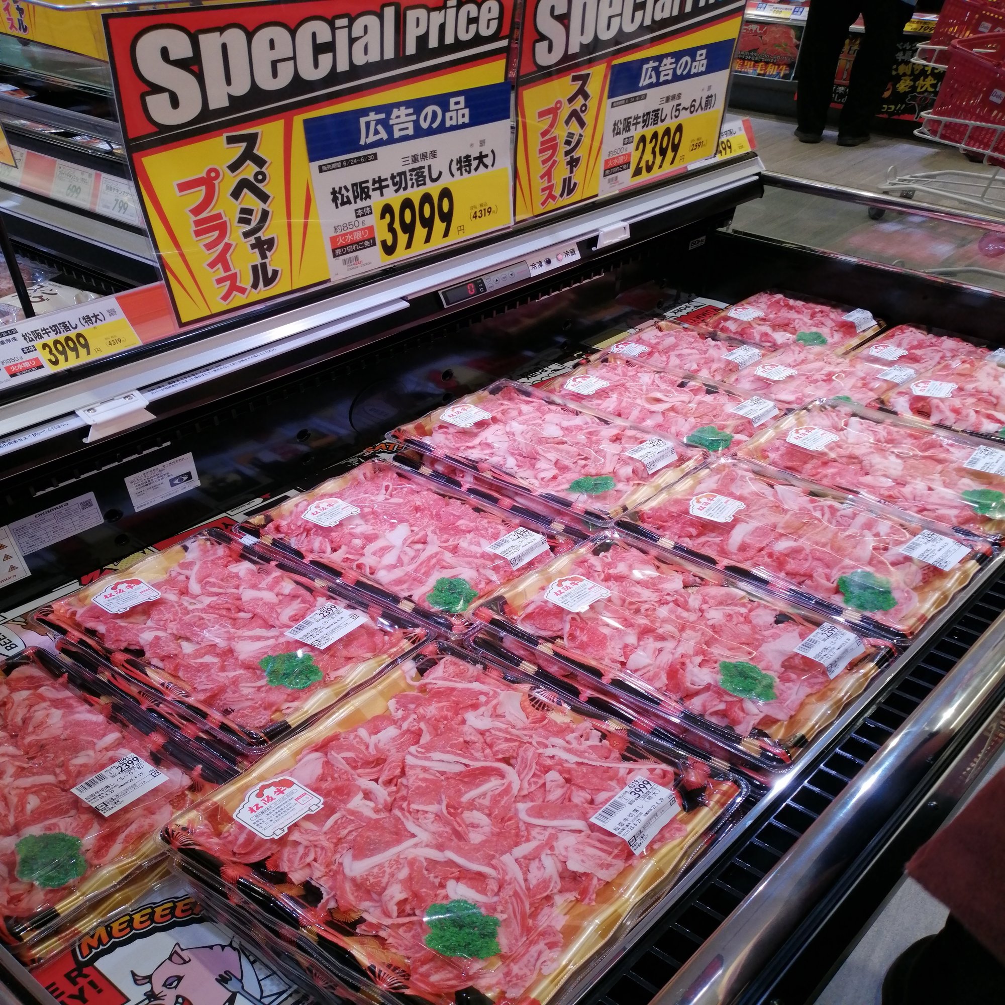 松阪牛はオープニングセールに向けて一頭買で仕入れてきたそうで、テワパートなどの5分の一の価格。普段は店頭には並ばないのでぜひこの機会に!