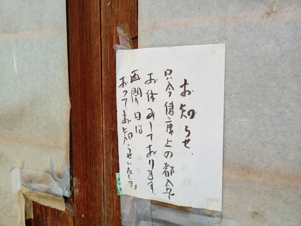 5月中旬に再訪いたしましたが、まだ再開の目処は立っていないようです。