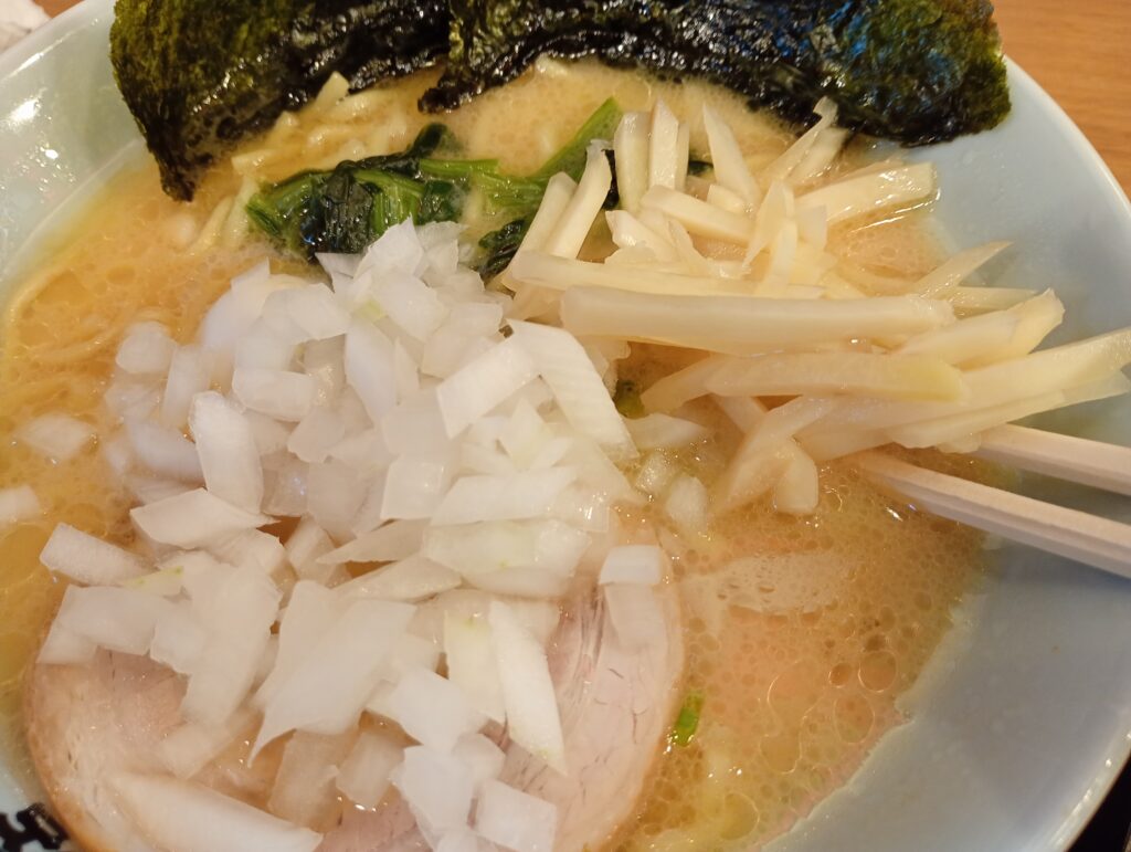 トッピングに玉ねぎや生姜がありました。スープとの相性もよく、入れ過ぎくらいに入れて食べても美味しかったです。