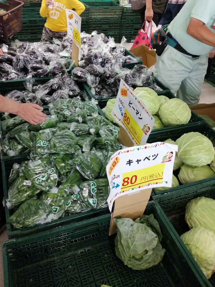 キャベツやピーマン、ナスといった普段遣いできる野菜がスーパーの日替わり品よりも安い。