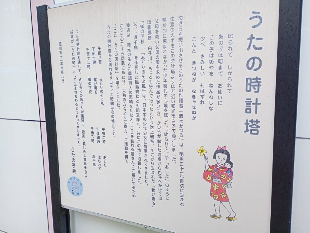 成増駅のロータリーには「うたの時計塔」があり、清水かつらさんの曲が流れています。
